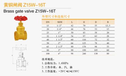 黃銅閘閥Z15W-16T技術規范: